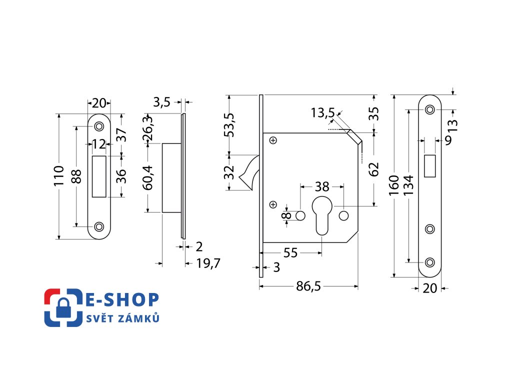 Zadlabací hákový zámek pro posuvné dveře a PZ - CYLINDRICKOU VLOŽKU