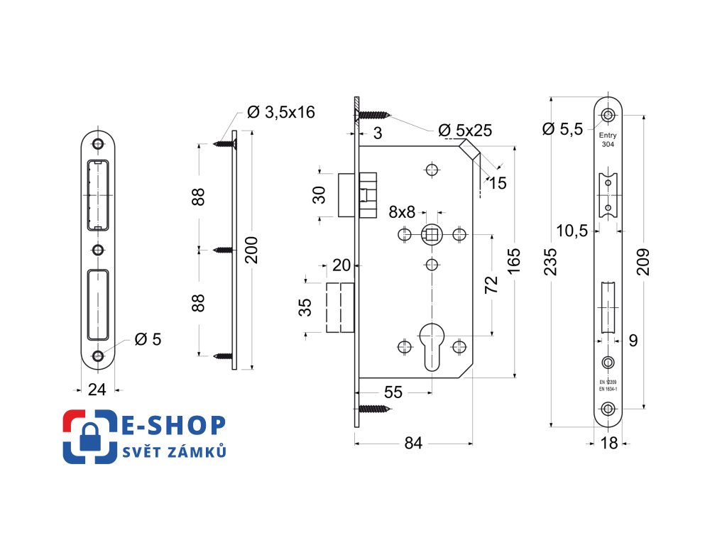 Zátěžový magnetický zadlabací zámek pro cylindrickou vložku EN.304M.PZ.72.55.18.CE