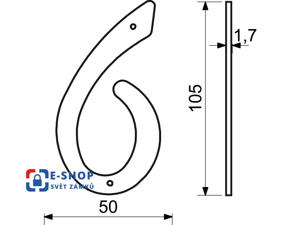 Hliníkové číslo v plochém „2D“ provedení RICHTER RN.105HR.6.AL.C