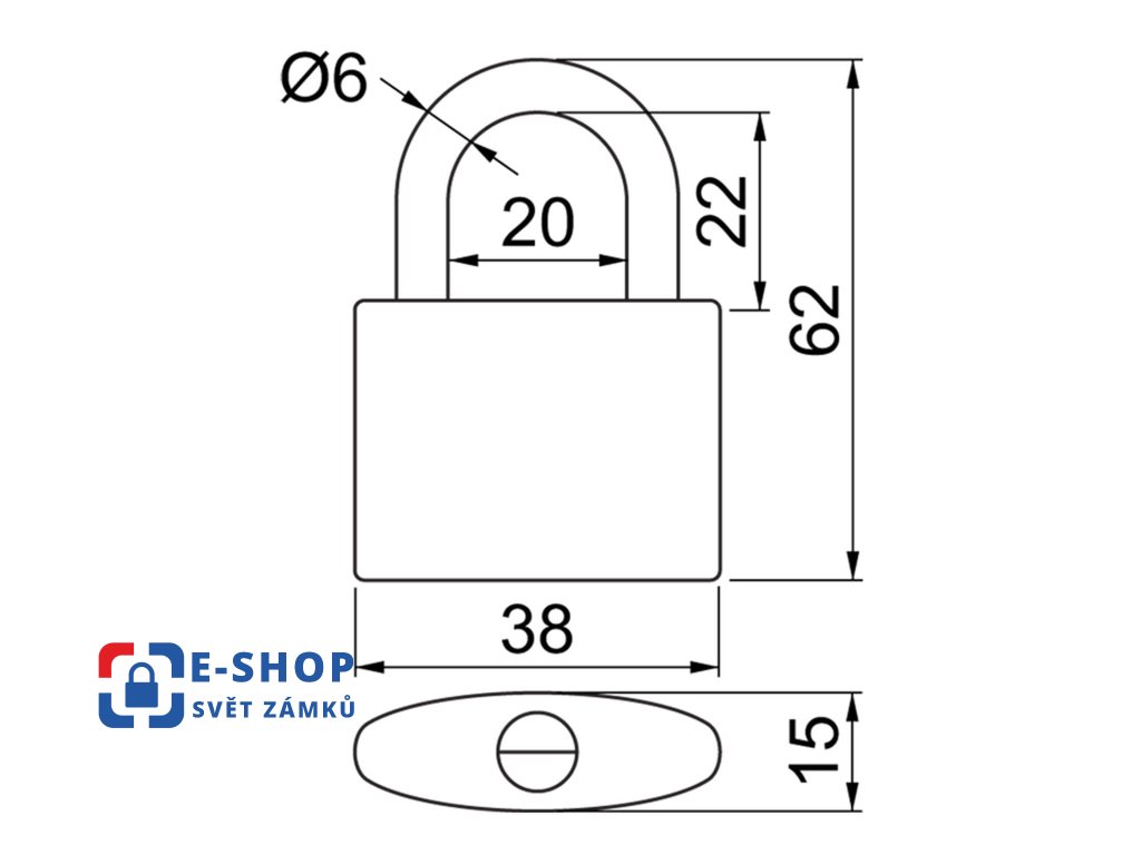 Klasický litinový zámek s barevným potiskem RV.OVAL.38.JU3