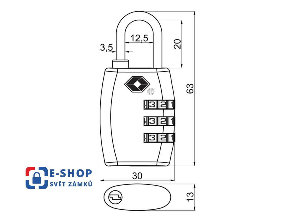 Kódový, cestovní TSA visací zámek na zavazadla RV.TSA.335.MOD