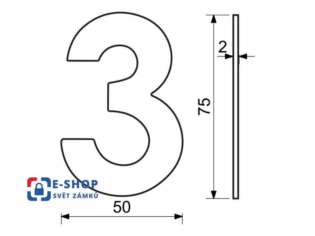 Nerezové číslo v plochém „2D“ provedení RN.75L.3.MD