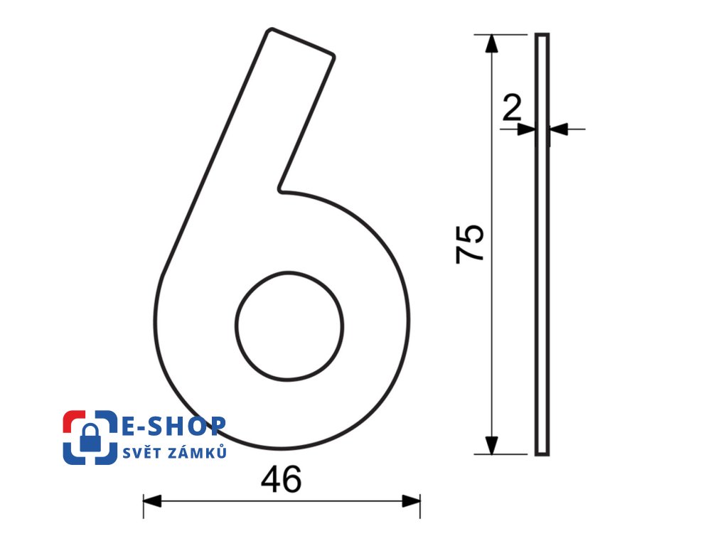 Nerezové číslo v plochém „2D“ provedení RN.75L.6.MD