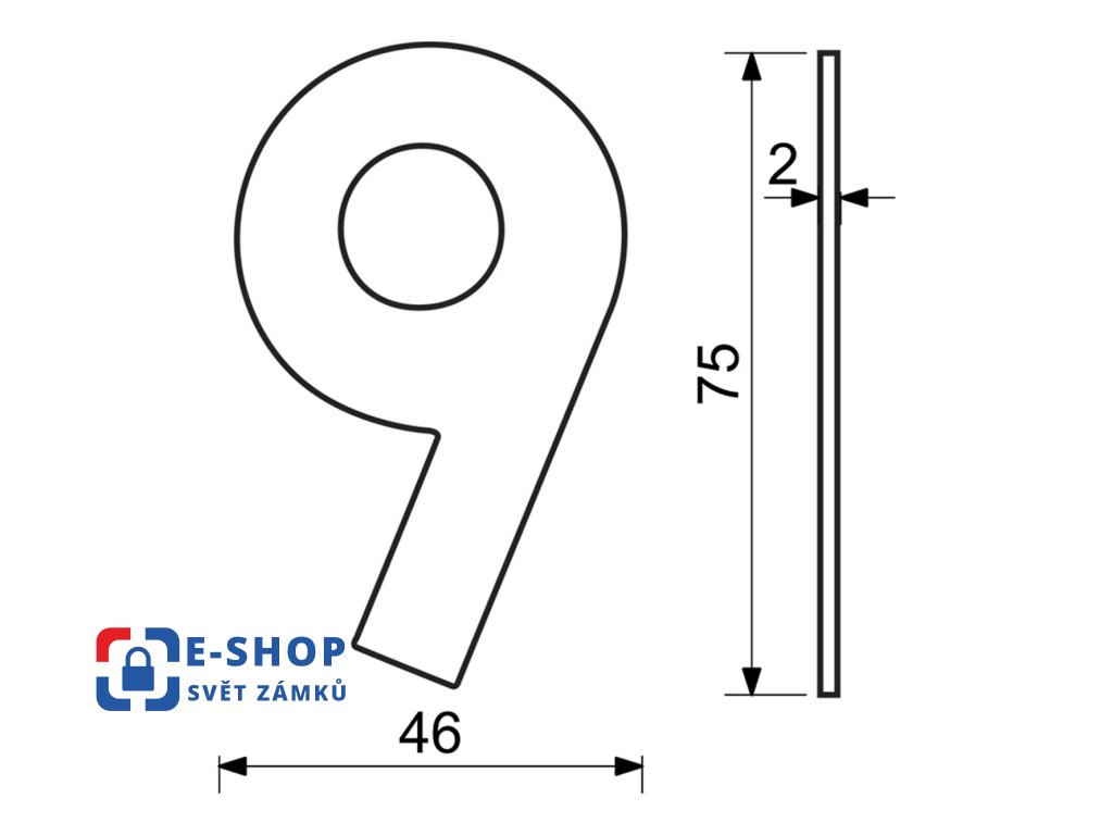 Nerezové číslo v plochém „2D“ provedení RN.75L.9.MD