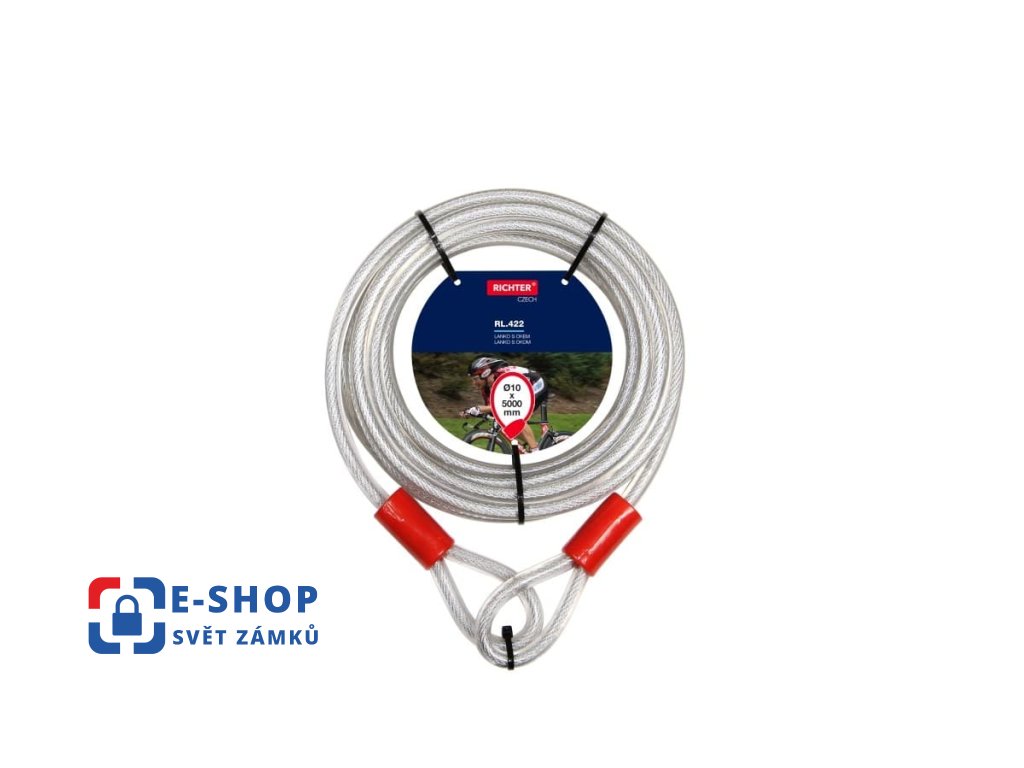 Ocelové lanko s okem pro zajištění více kol, zahradního nábytku atd. RICHTER RL.422.10x5000.CIR