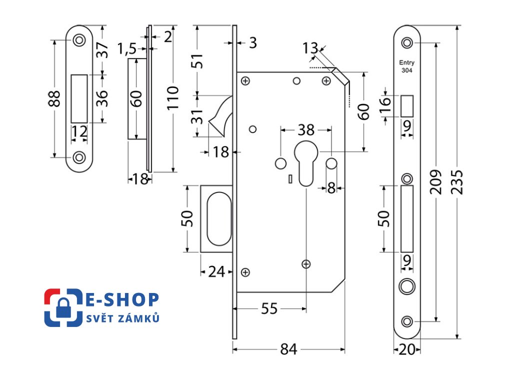 | Backset: | 55 mm |