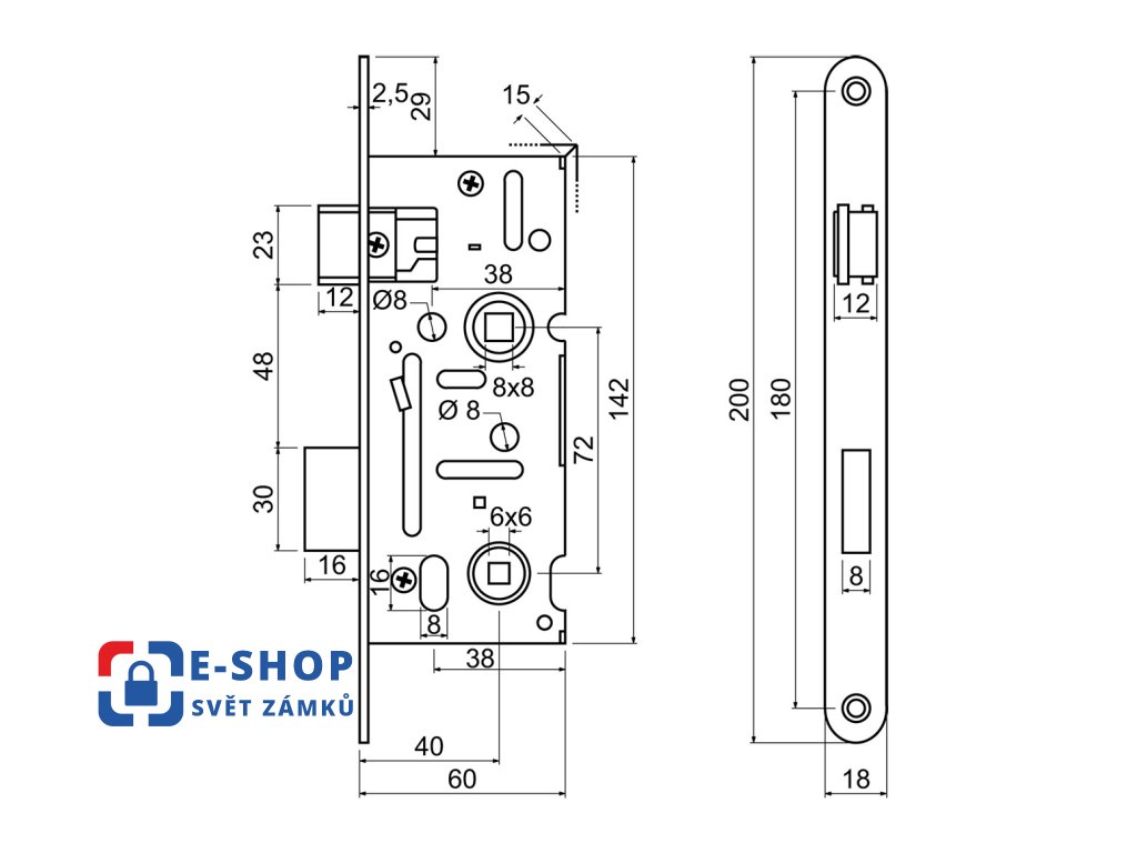 Zadlabací zámek pro WC kličku RICHTER Z.301-WC.72/40(60).18.PL