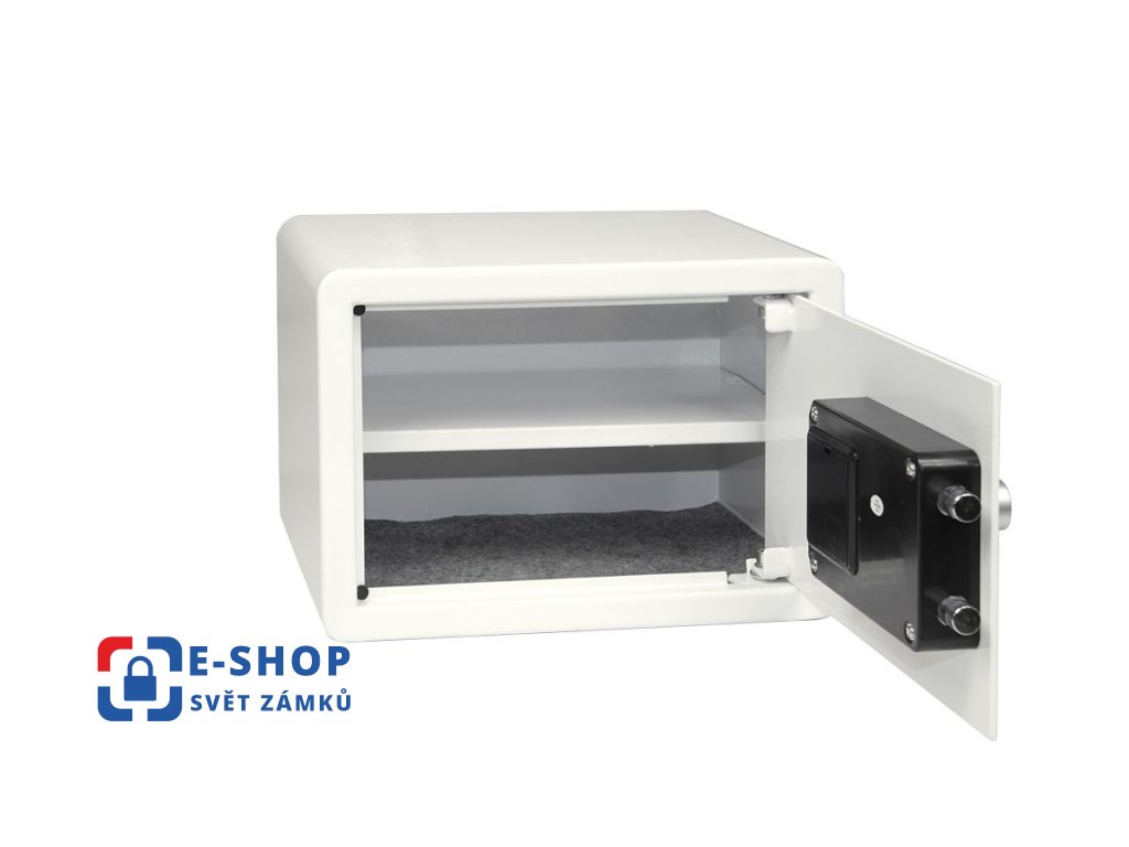- Balení vč. baterií AA 4 ks, 2 ks nouzových klíčů, 1 ks vyjímatelné police, filcu, ocelových hmoždinek a šroubů