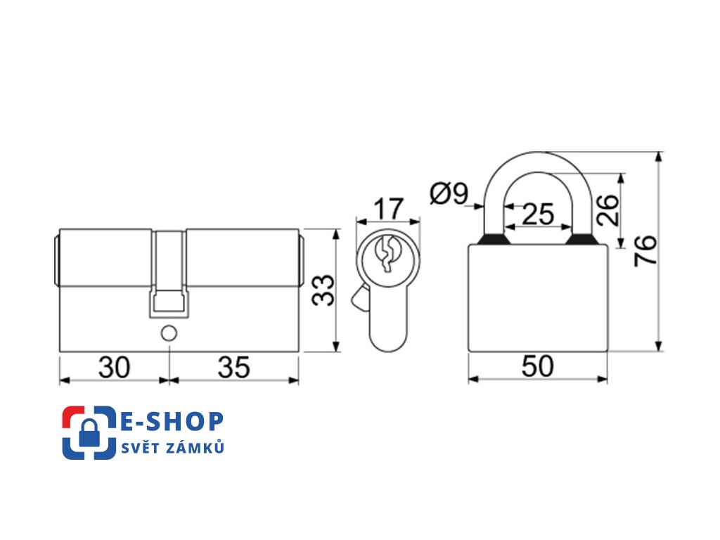 SET 2+1 visacího zámku a cylindrické vložky