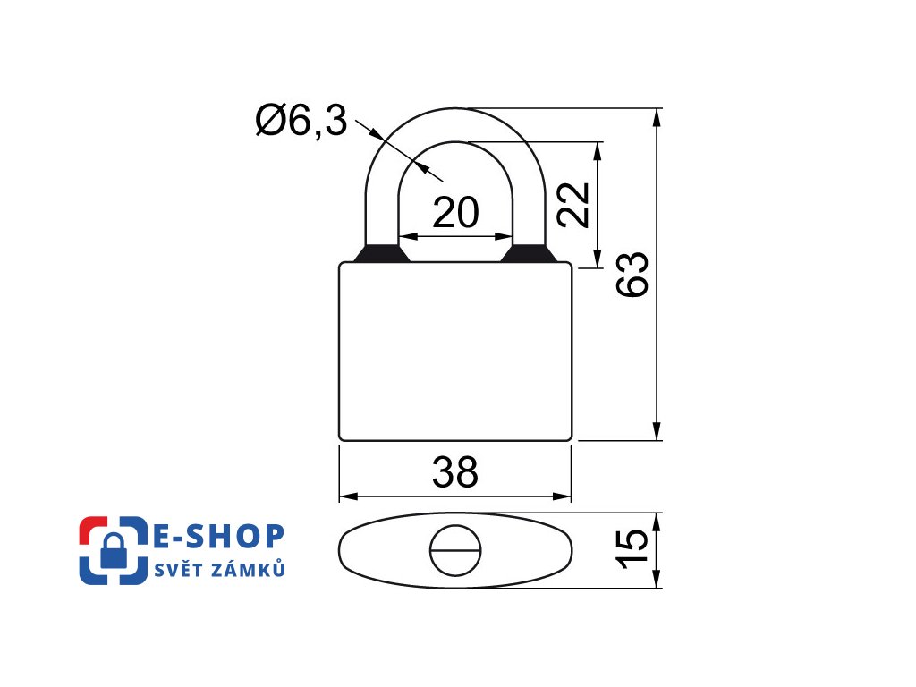 - Klasický litinový zámek. Třmen HARDENED, jištěný ve dvou bodech