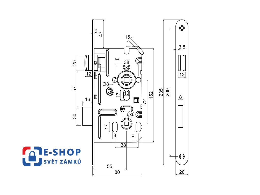 Zadlabací zámek pro WC kličku Z.301-WC.72/55/20.L.CE