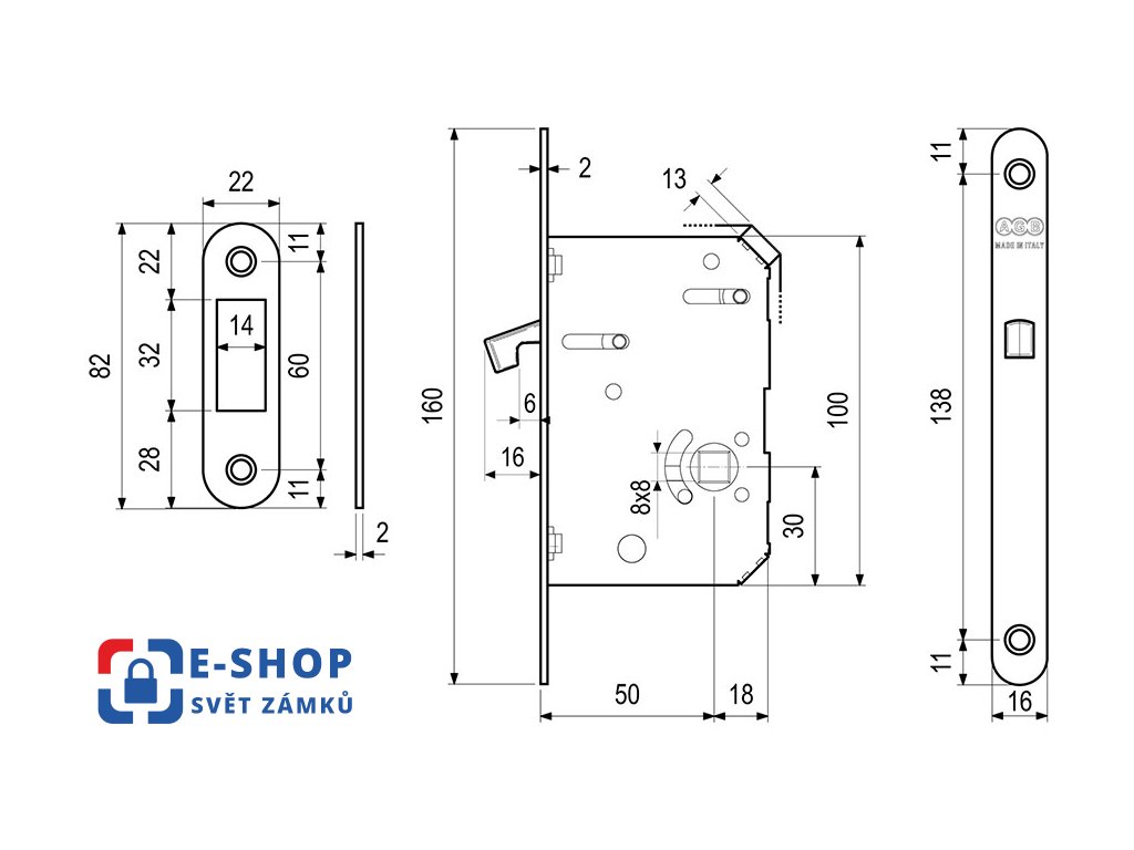 Zadlabací hákový zámek pro posuvné dveře a WC kličku Z-AGB.HK.WC/50/16.TICE