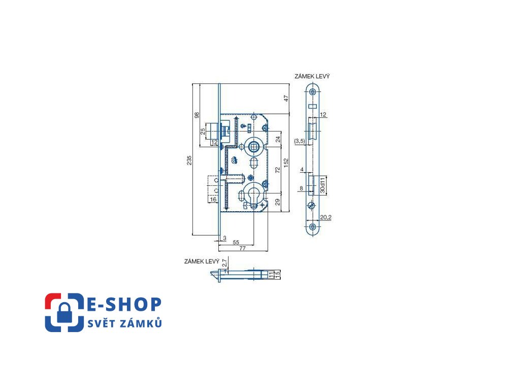 Zámek zadlabací vložkový K 221 - LEVÝ