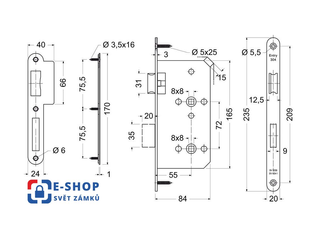 Zadlabací zámek pro WC kličku RICHTER EN.304.WC.72.55.20.PL